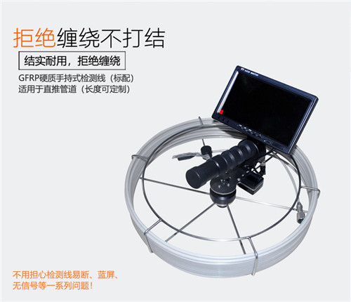 GT21D系列國產工業內窺鏡是一款手持一體設計的工業管道內窺鏡,鏡頭采用彈簧身設計,能夠輕松通過1-2個90°或U型彎角,確保檢測的流暢性。GFRP硬質檢測線盤采用耐磨耐腐蝕性強的玻璃纖維,直推有力不易打結,收放自如可單人操作,另可選手持式鋼絞線,防摔耐磨韌性足。性價比高,功能i性強。175度廣角直視鏡頭,自帶LED燈光照明,亮度可調節。可選計米功能,實時顯示檢測線的使用長度。根據自身需要可搭配21mm/16mm/8mm直視一體鏡頭,滿足各類需求的管道檢測項目。